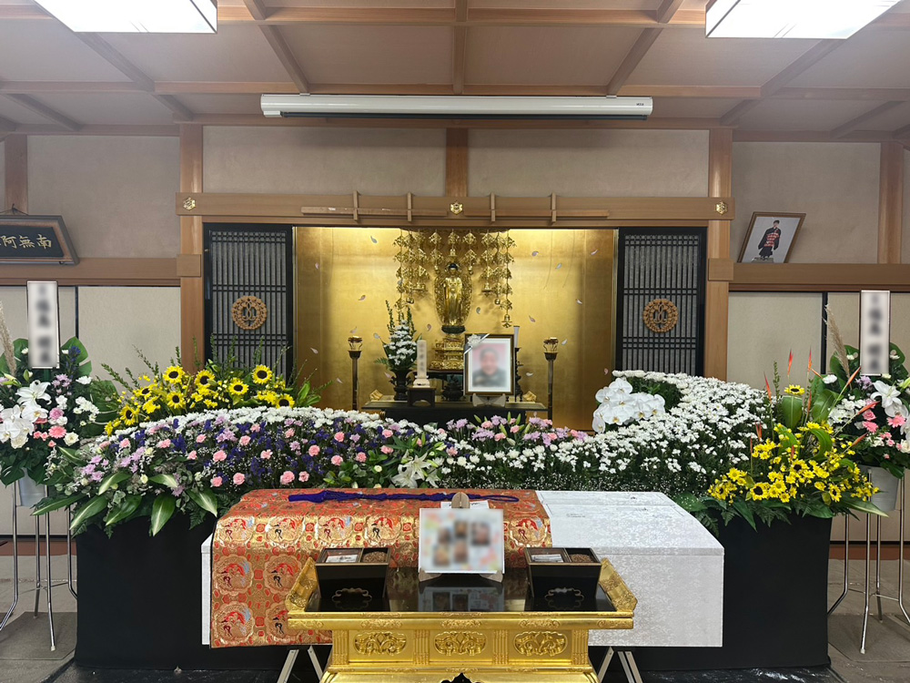 令和7年9月29日 ご葬儀 K様 祭壇の飾り付けに感動しました。 祭壇の飾り付けに感動しました。あいあいさんの対応が良くしっかりと母を見送る事ができ何も言うことがありません。お世話になりありがとうございました。 葬儀場所: 妙圓寺様プラン: あいあい60プラン