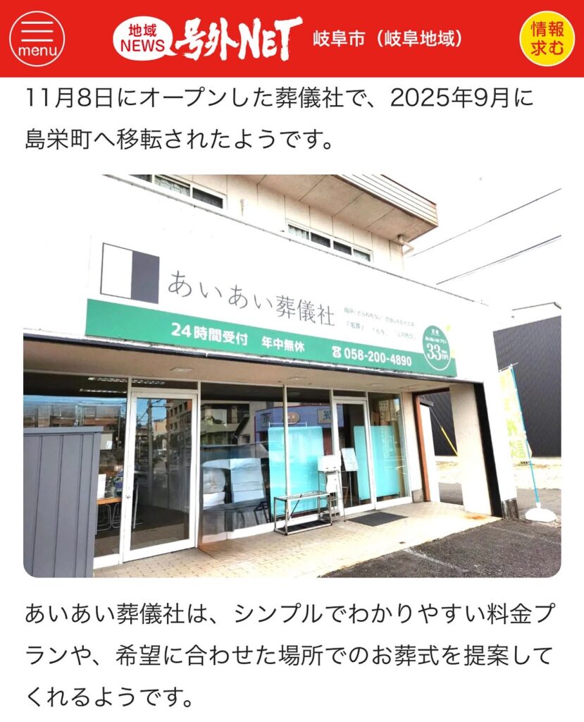 このたび、地域情報サイト「号外ネット岐阜市版」さんに